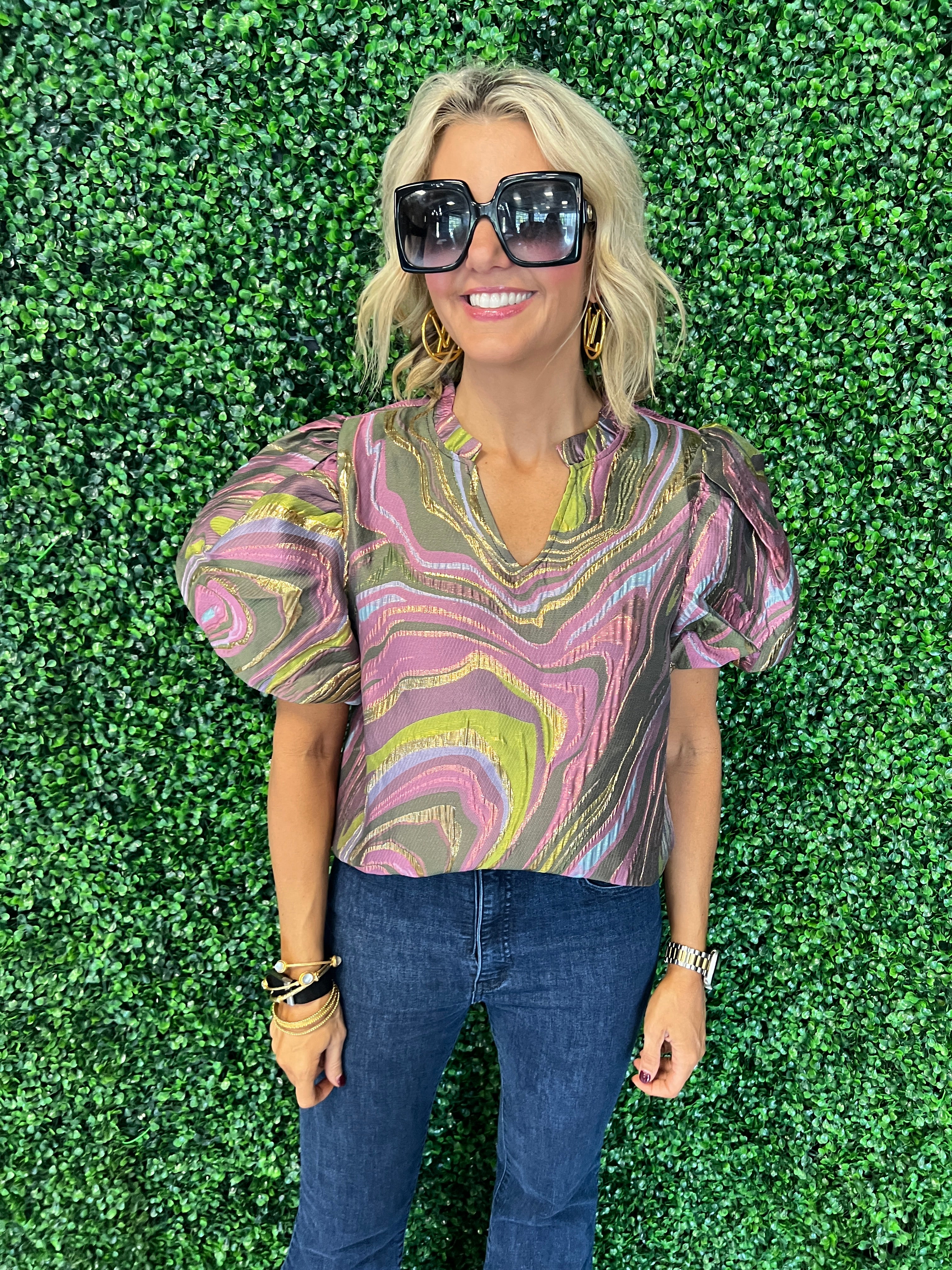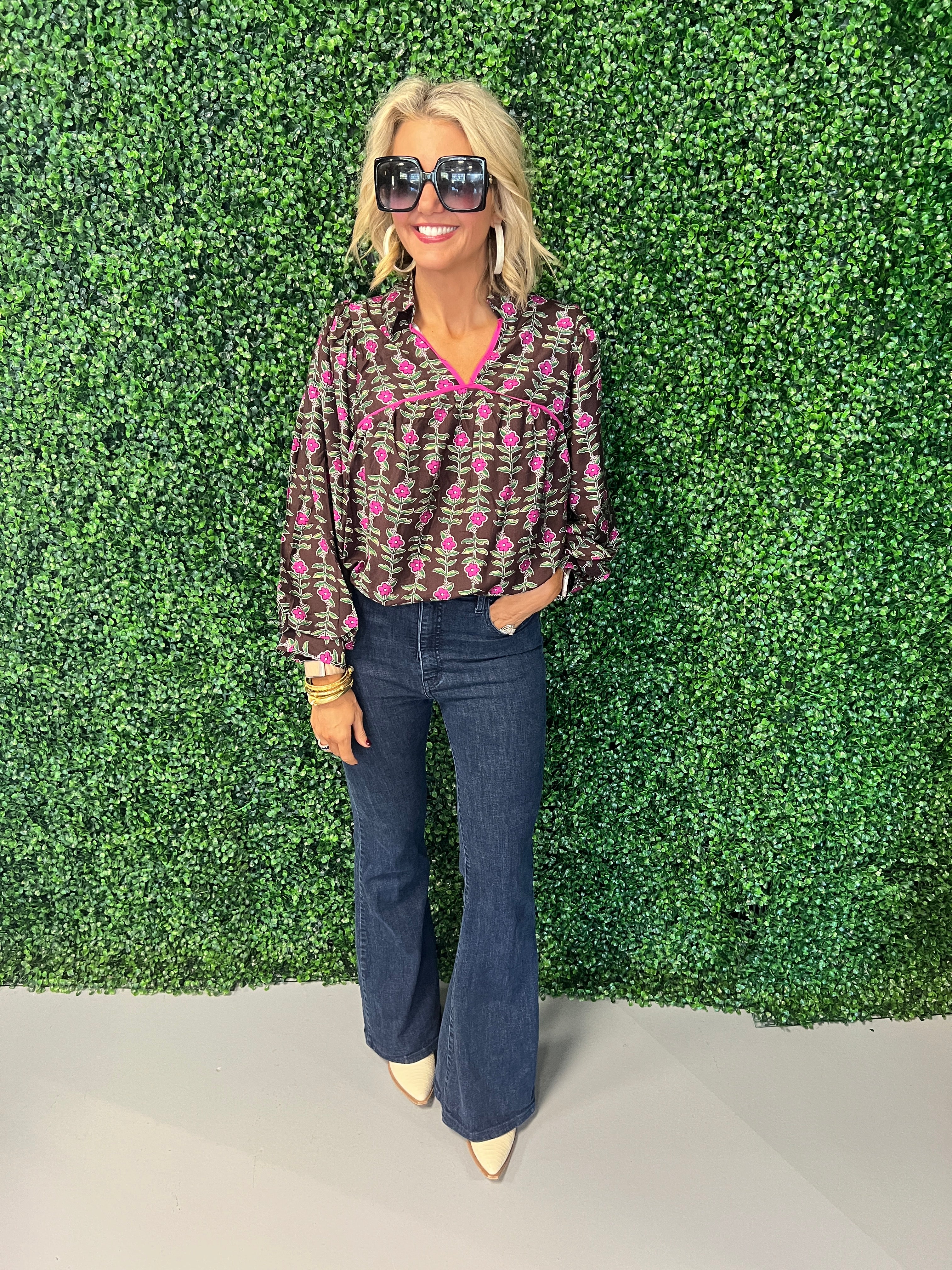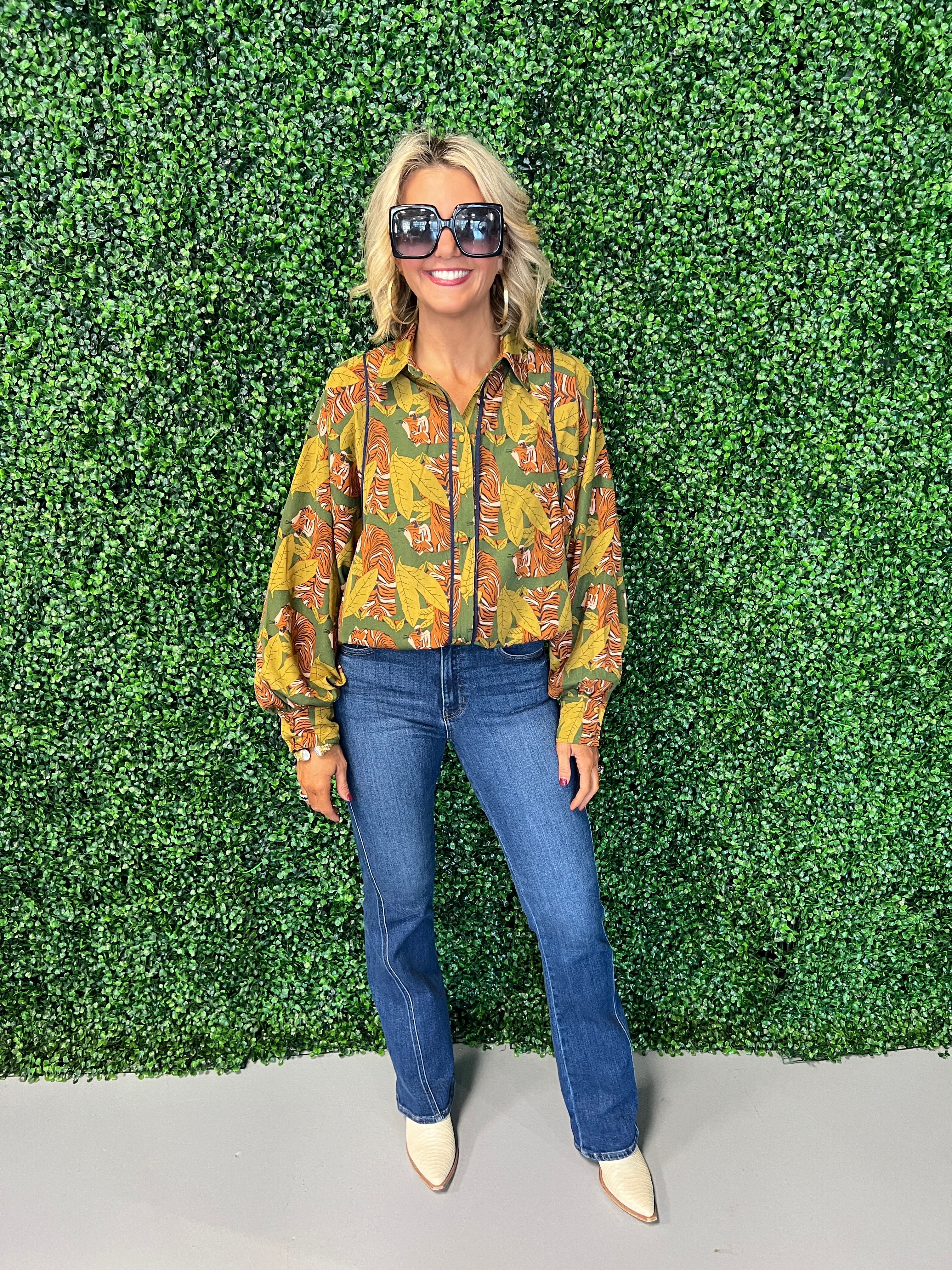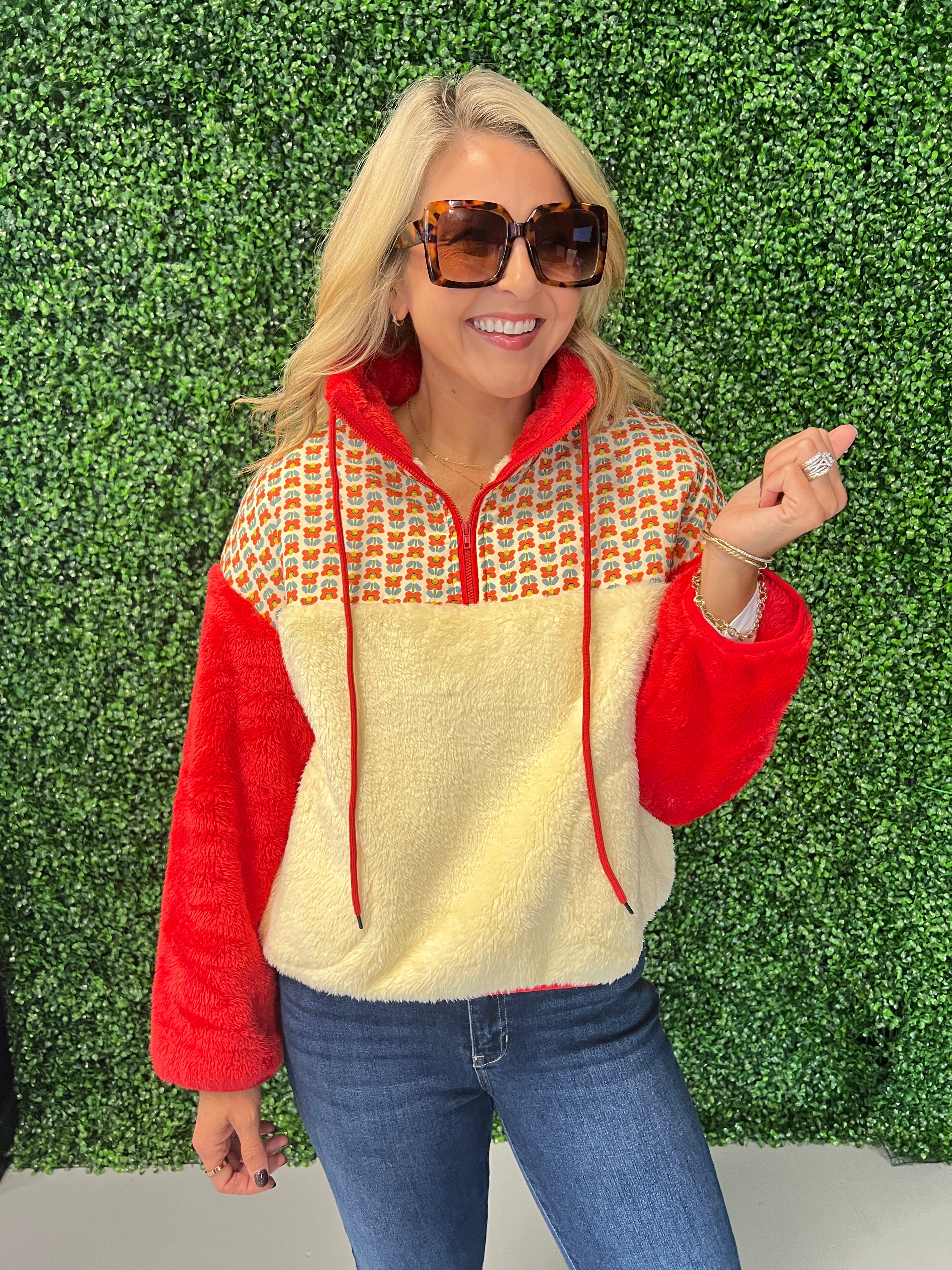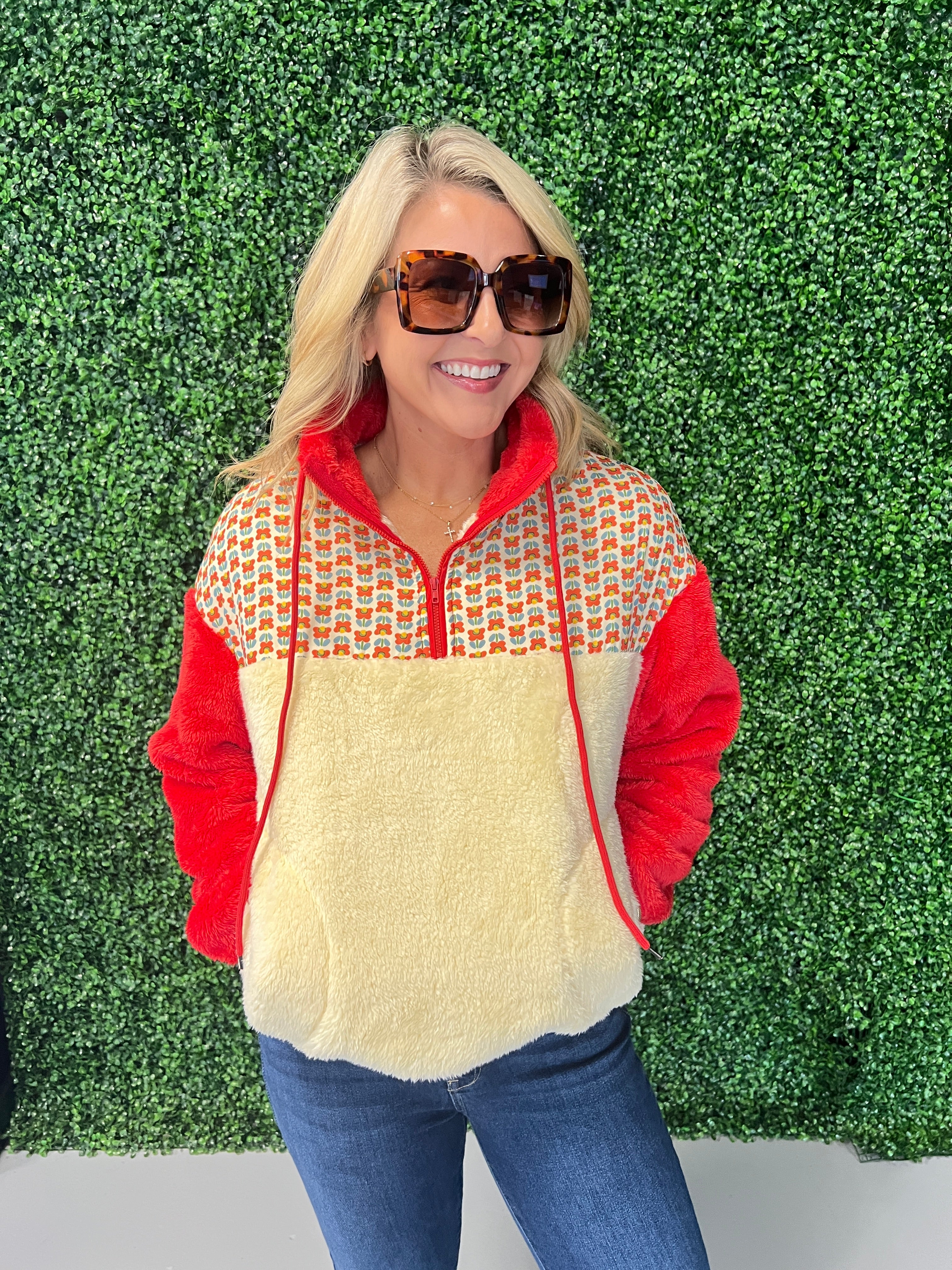 Brown & Blue Mock Neck Striped Cropped Sweater