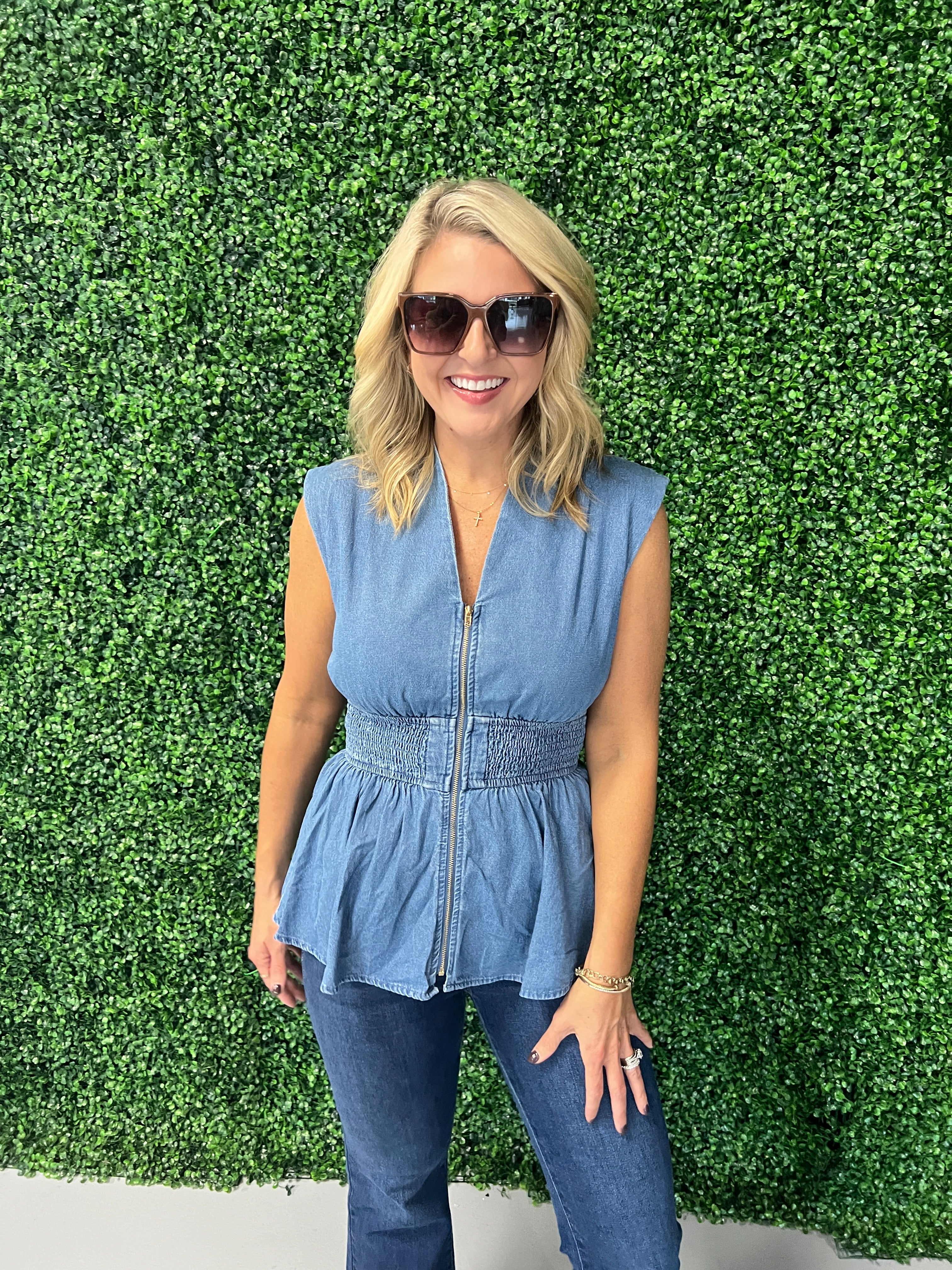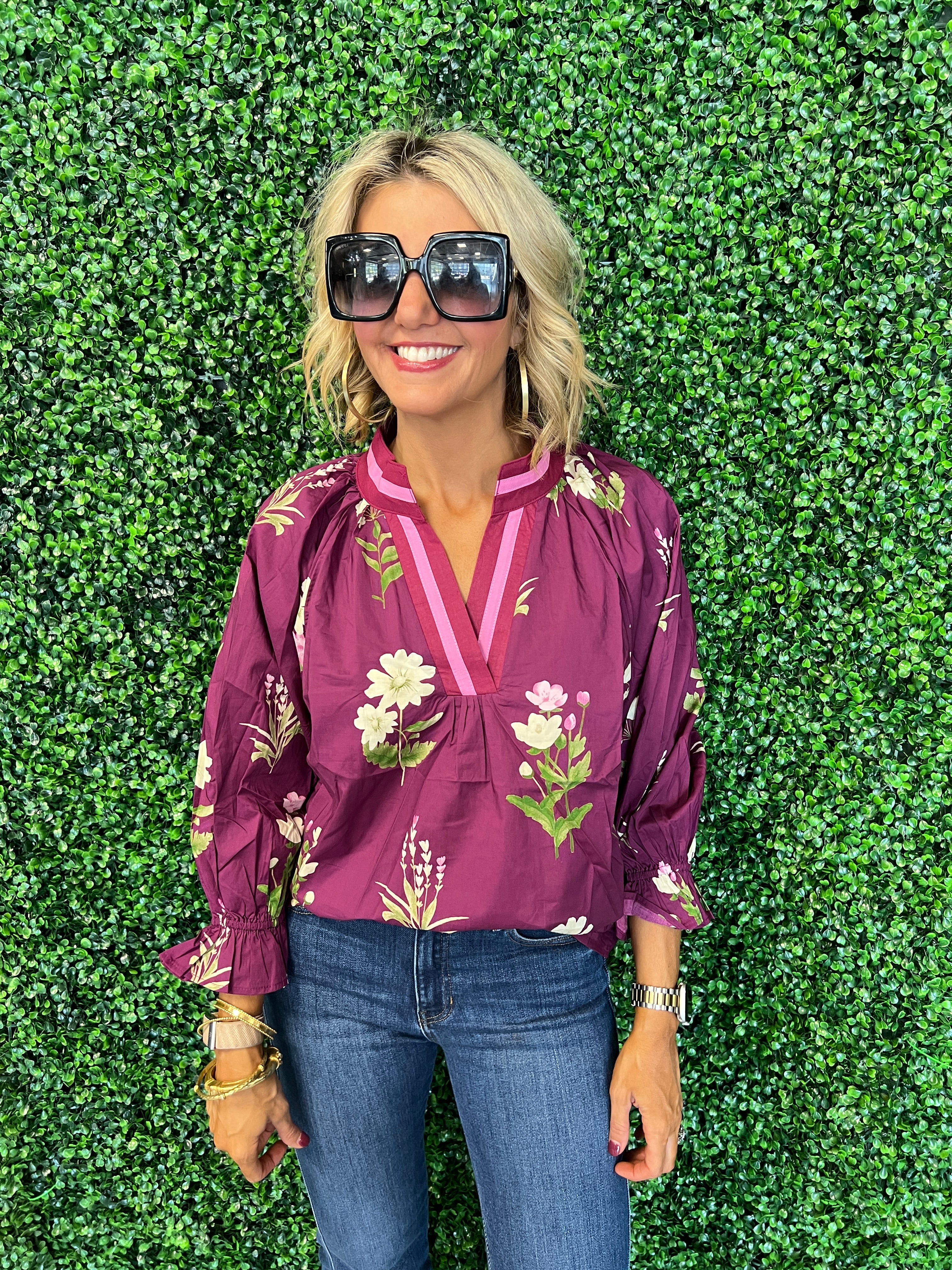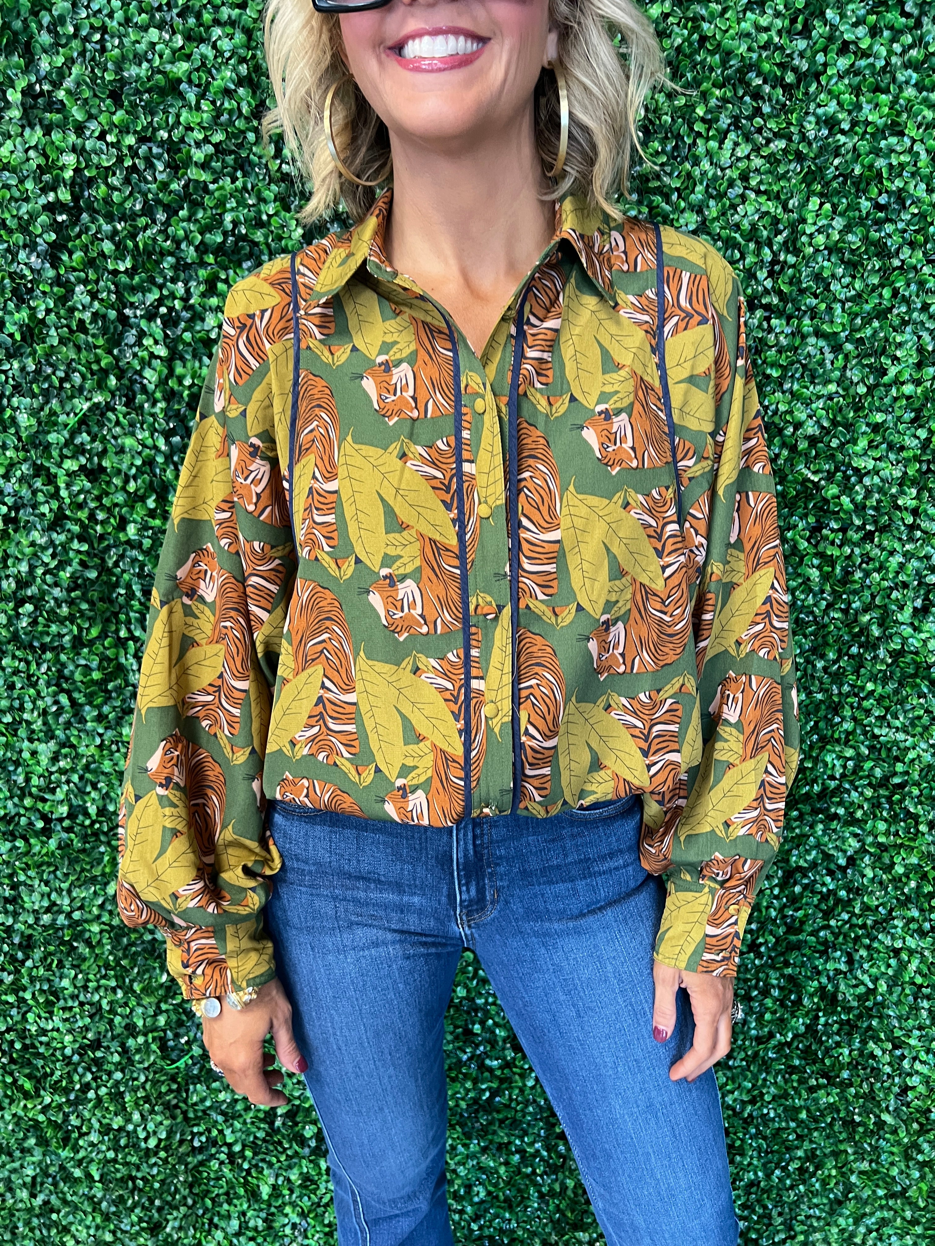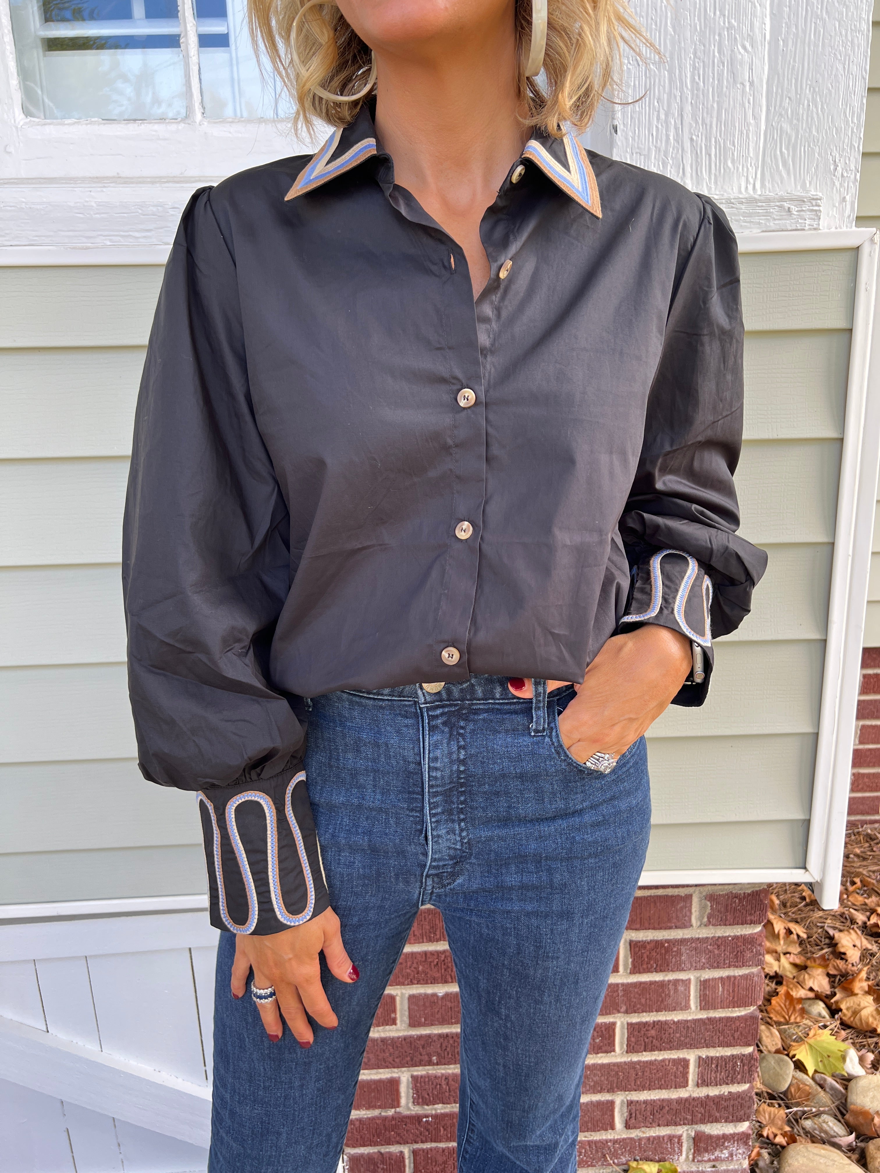 Brown & Blue Mock Neck Striped Cropped Sweater