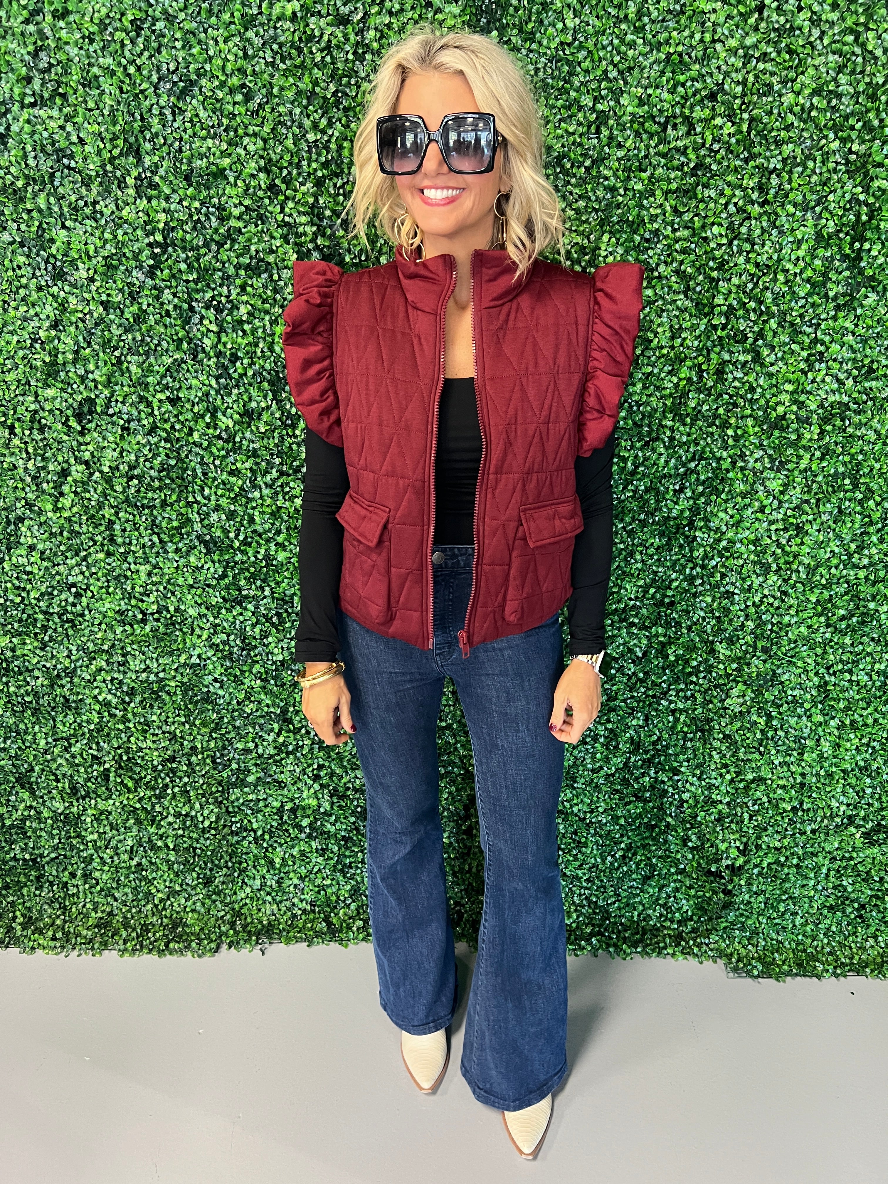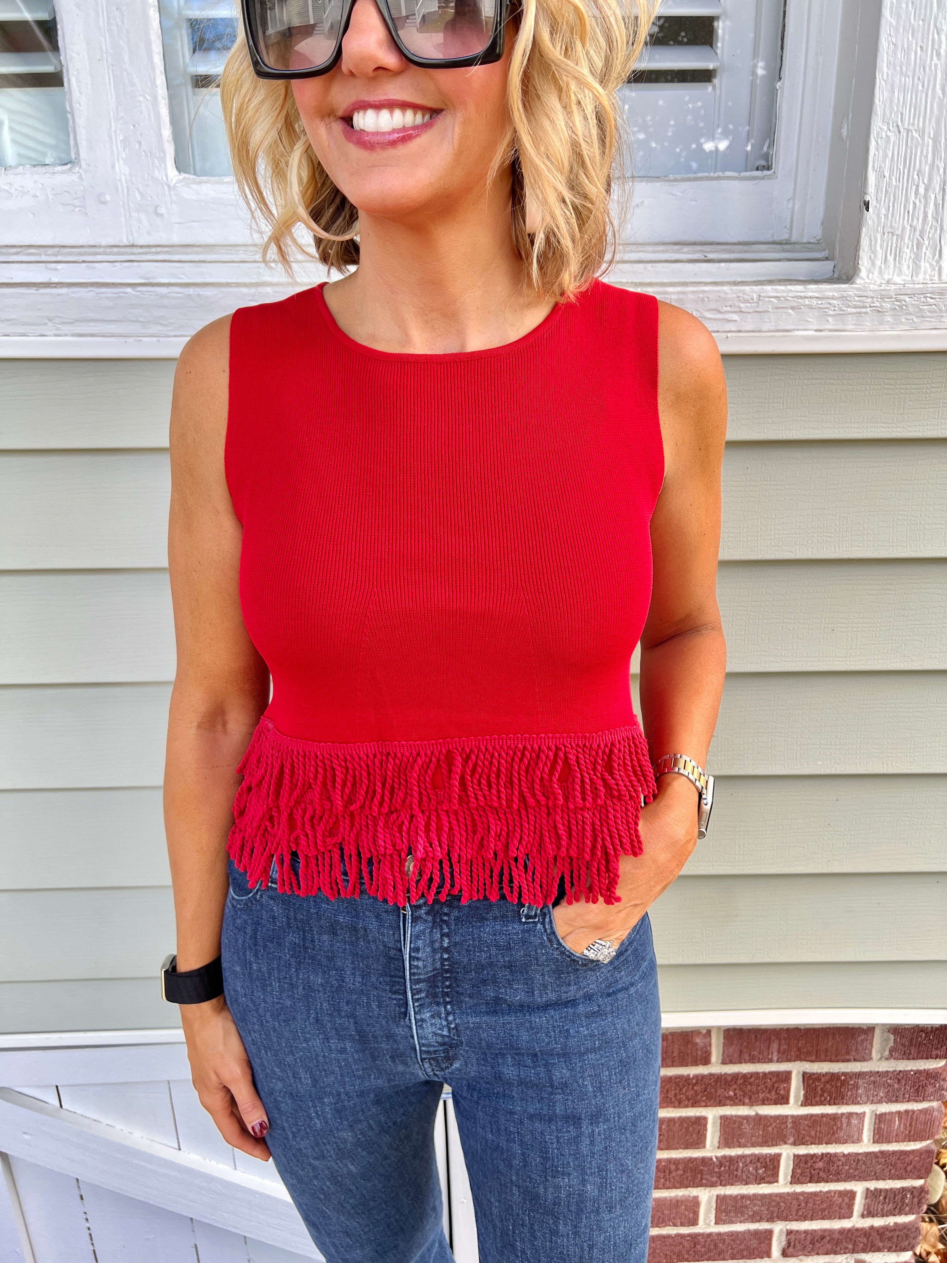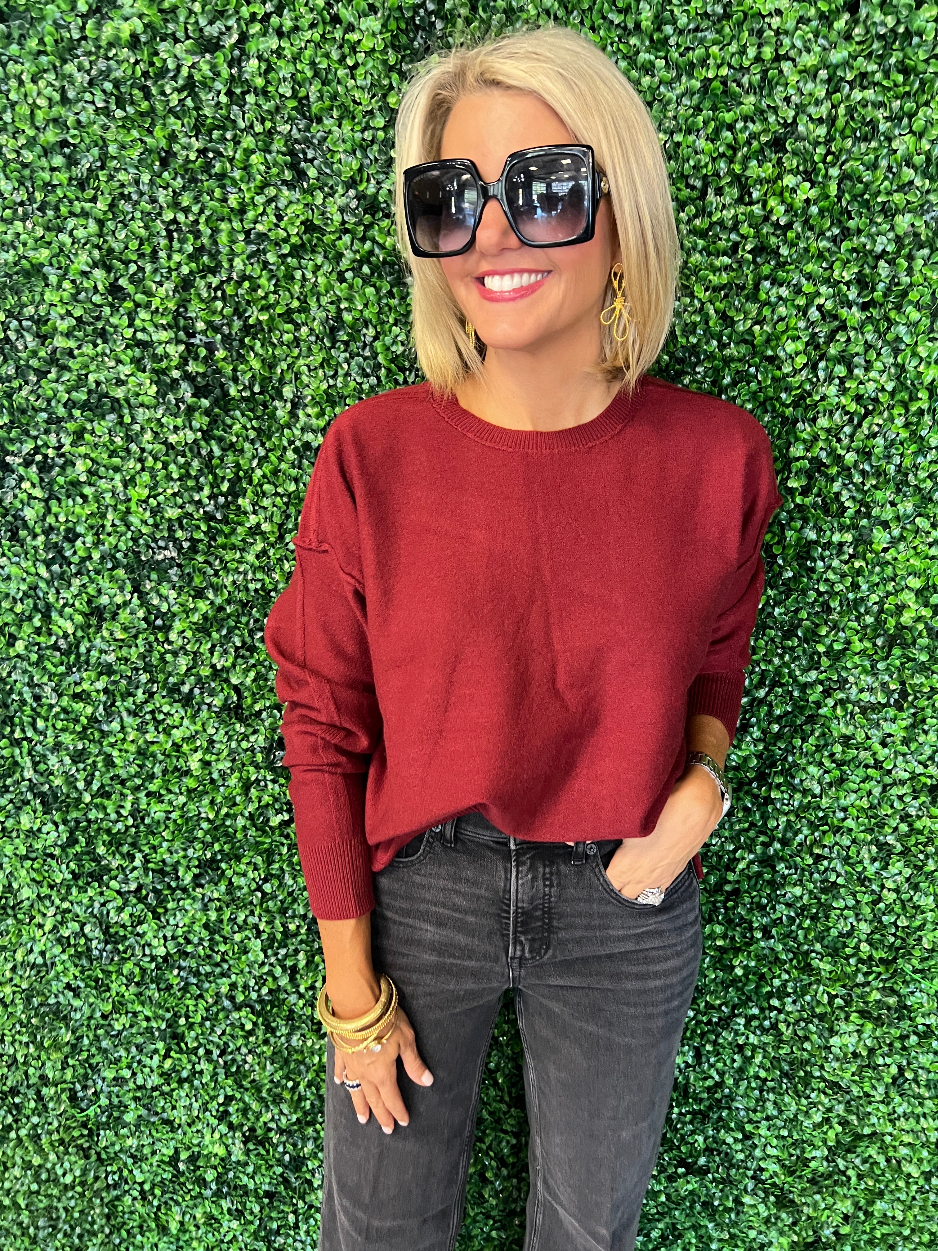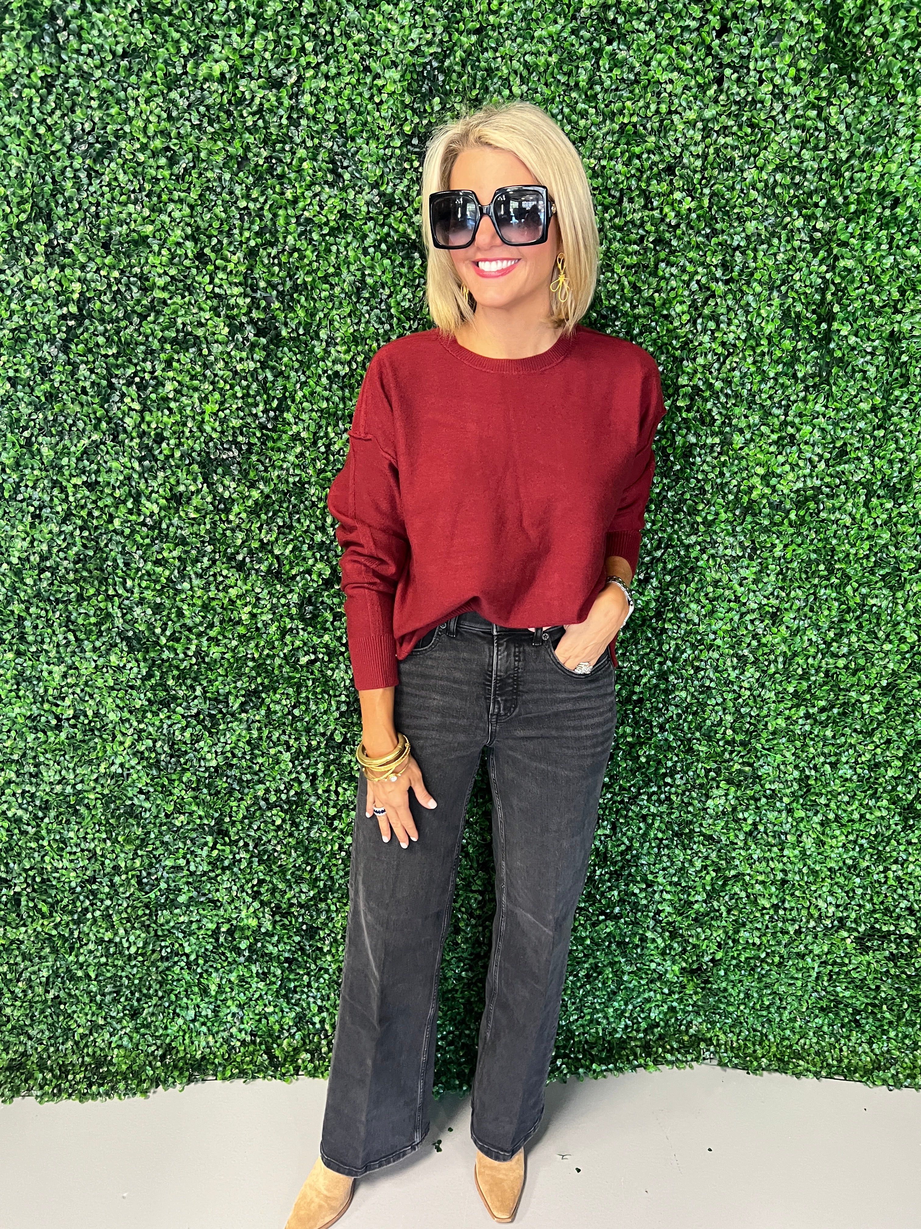 Red V-neck Buttoned Ribbed Long Sleeve Cardigan
