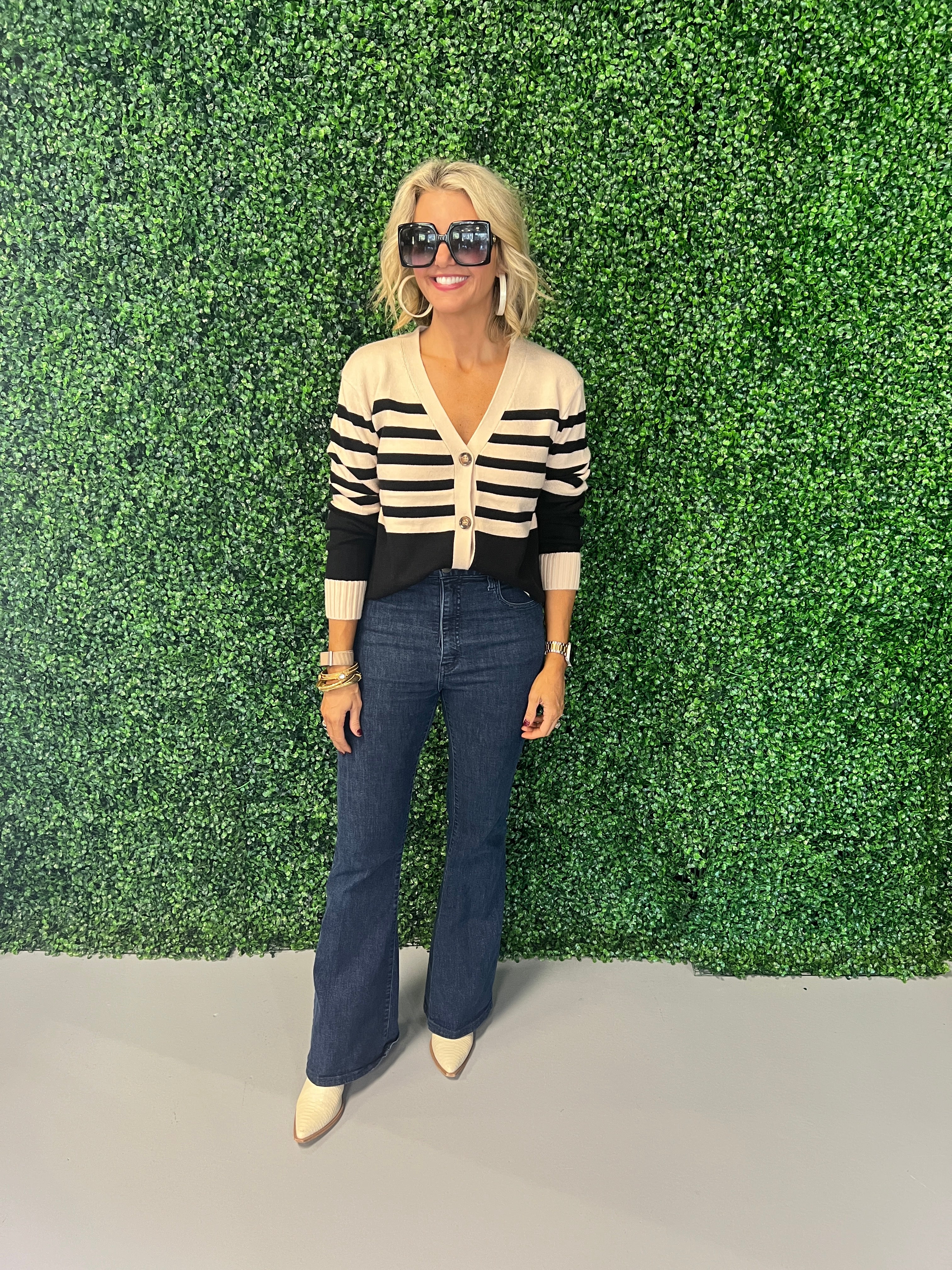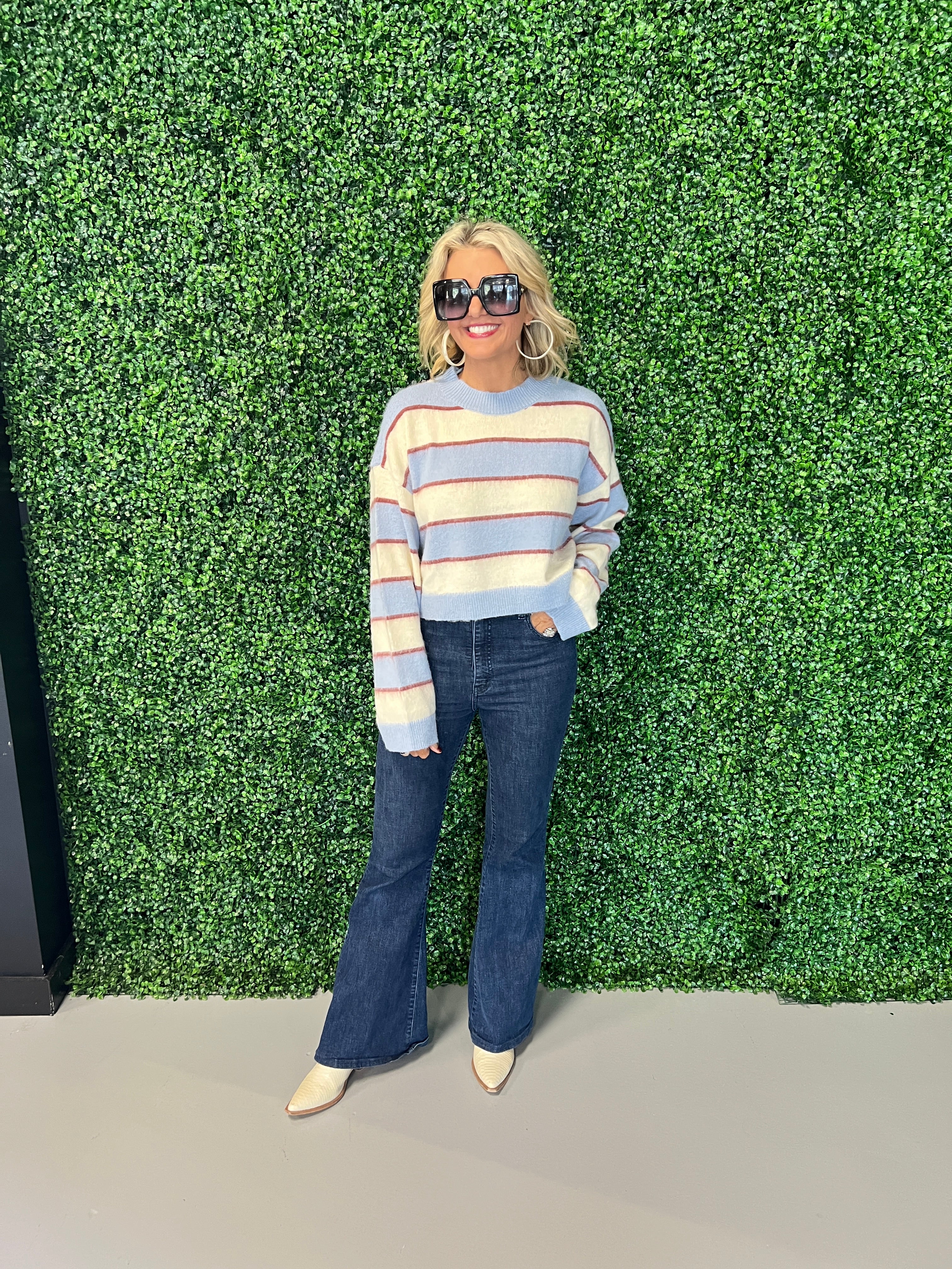 Fuzzy Stripe Knit Long Sleeve Crop Sweater Top